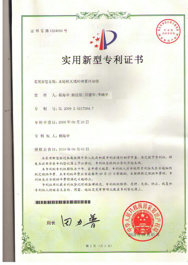 水輪機(jī)無填料噴霧冷卻塔